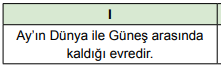 • I. Bazı evrelerde Ay, Güneş’e Dünya’dan daha yakındır.