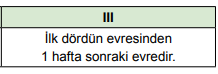 Tabloda I, II ve III ile gösterilen yerlere aşağıdaki evrelerden hangileri gelmelidir?