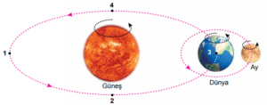 Aşağıda Dünya ve Ay’ın yaptığı hareketler verilmiştir.