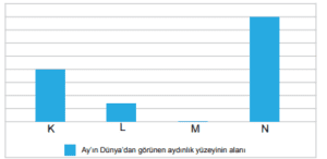 Aşağıdaki grafik ise Ay’ın Dünya’dan görülen aydınlık yüzeyinin alanlarını göstermektedir.