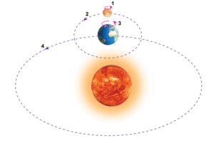 Yukarıdaki şekilde Güneş, Dünya ve Ay’ın dönme ve dolanma yönleri verilmiştir.